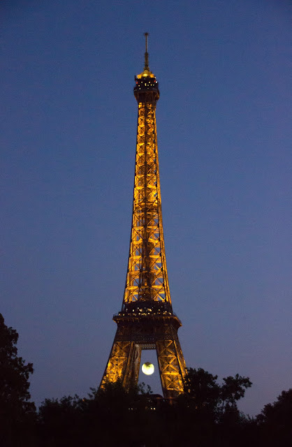When it was finally time to board our boat, we climbed to the chilly, open, upper deck and set off into the night. It was still fairly light out at 10:00 when we pulled out of the port, but the darkness quickly settled, and Paris lived up to its name, "The City of Light."
